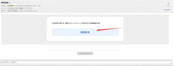 之后您需要到您所填写的邮箱或手机上,点击解锁账号,如下: