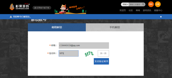 点击解锁账号之后,您会跳转到杉果官网,然后会看到以下提示,出现提示的话,说明您的账号就已经解锁完毕了,可以正常登陆使用了。