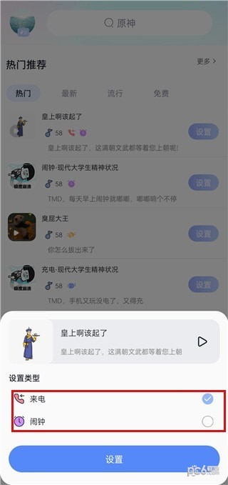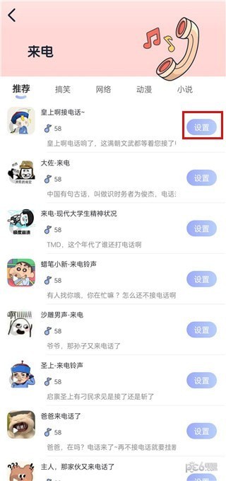 5、设置功能,能够让用户将铃声设置为彩铃、来电以及短信提醒