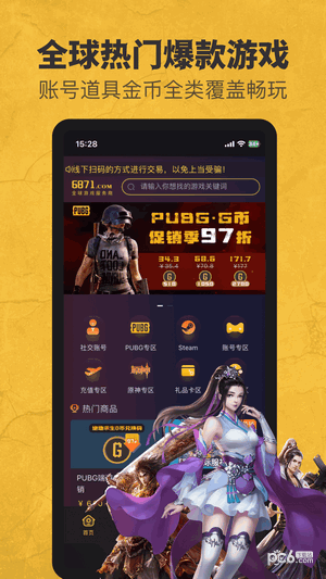 6871平台app是一款专为游戏爱好者打造的游戏交易软件。6871平台app提供超多热门游戏的交易,用户可以通过该软件轻松买卖的游戏里的物品装备或者游戏账号,拥有专业的评估团对,价格有保障。交易简单,优质的售前售后服务,交易更安全。