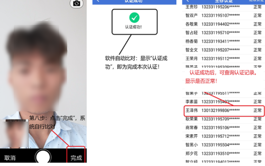 9、系统自动比对人脸图片,显示“认证成功”即为完成本次认证