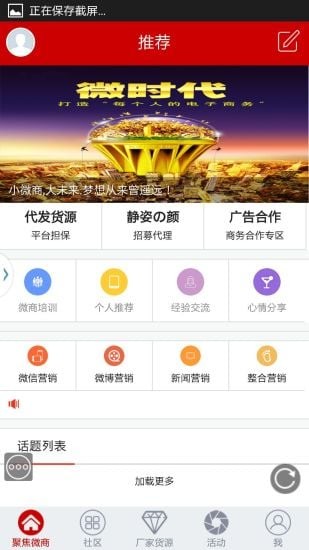 微时代社区app是一款供微商学习交流的客户端应用,微时代社区让您可以在线参与微商培训,学习更多有利于营销的知识,还可以参与讨论与大神一起交流经验,询问您想了解的知识,方便实用。