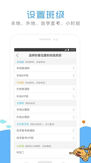 课程设置:教练根据自己的授课能力,设置报考班类型,价格可供学员选择报名。