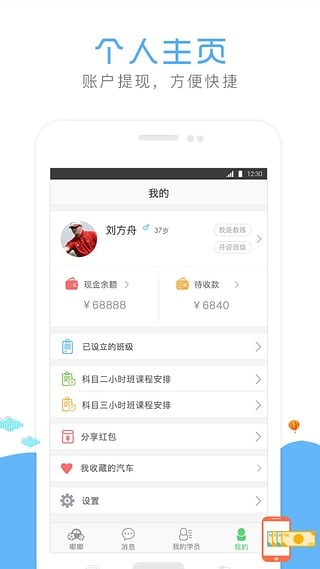 教练利用APP可轻松掌握,高效地实现与学员沟通、排课、教学和收款等功能。减少沟通成本,提高工作效率。是教练靠得住,提高收益的神器。