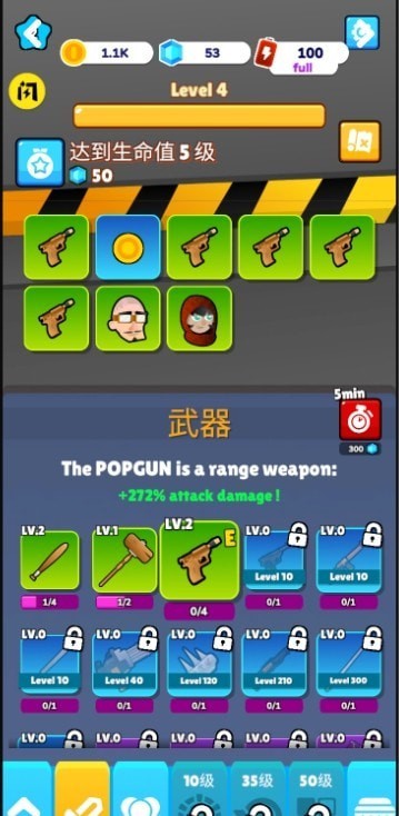 僵尸的战争是款竖版放置类型的僵尸战争游戏,各种可爱的僵尸模型,但是您需要通过强大的射击武器去将其消灭,同时,在武器库中各种道具以及武器需要消灭僵尸获取金币才能够购买,强大自己生存下去吧。