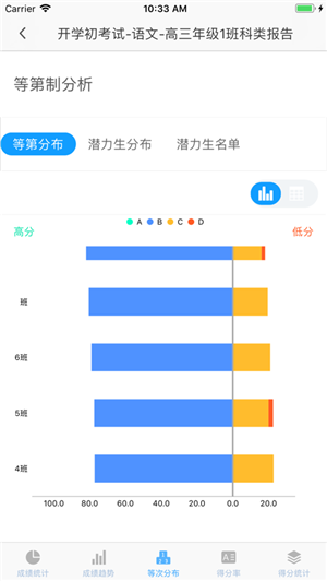 学业诊断:属性得分情况直观优劣分析