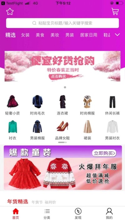1、现在通过平台我们可以找到各种精选年货,特价的春装现在也正在促销中,方便大家购买。