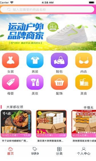 1、品牌秒杀,限时免单,9.9元包邮等多元化的购物活动,自由挑选物资;
