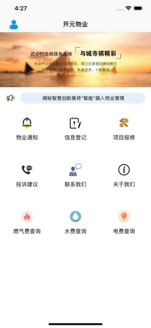 开元物业app是一款掌上物业应用。通过开元物业app,用户可以查询最新的小区物业资讯,物业通知,故障报修,家政清洁,生活缴费等功能,非常实用。
