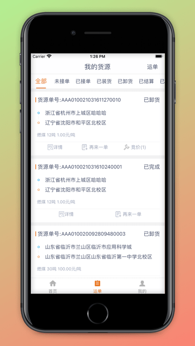2、货源详情一览,每一种货物的详情信息可以在这里清楚了解;