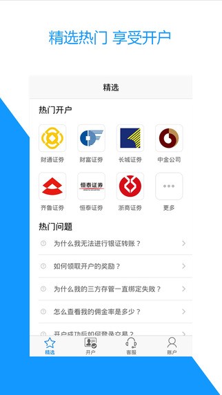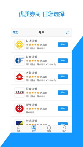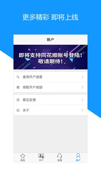 股票开户app是由上市公司同花顺出品,股票开户app携手各家券商,低佣金,大优惠,足不出户,5分钟即可轻松完证券开户、证券转户,开启您的财富之旅!