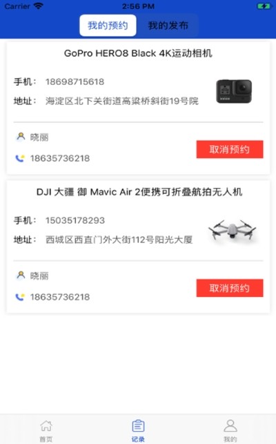 还可以发布自己的闲置的数码产品;可以管理自己的预约和发布记录。