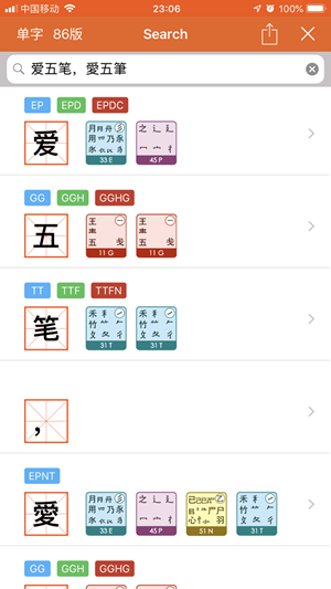 2、提供编码反查功能,具有汉字拆解图