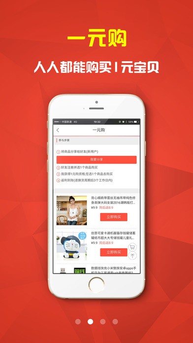 1、一元购:邀请好友,人人都能一元购买宝贝;