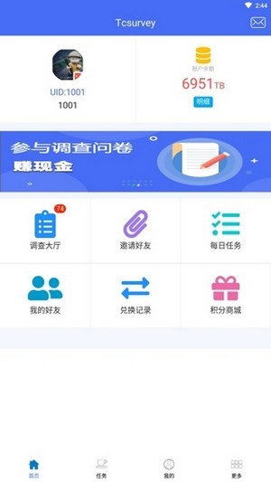 Tcsurvey是一款在线市场调研APP。用户可以通过参与在线调查,当每完成一份问卷后可以获得相应的积分。积分可以兑换支付宝,PYAPL以及各种礼品卡等,使用Tcsurvey app,只需要完成软件内部的市场调研问卷,就能轻松获取积分,当你的积分攒到一定数量以后,就能换取现金了,是你做兼职的不二之选。